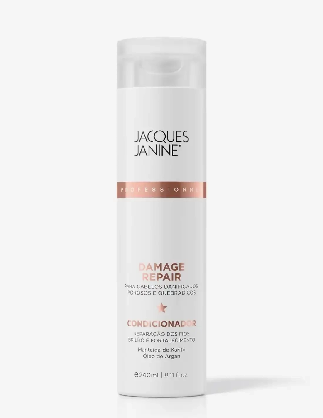 El nuevo Acondicionador Damage Repair de Jacques Janine, marca brasileña de renombre profesional, ha sido desarrollado para brindar una hidratación profunda y devolver la vitalidad al cabello dañado, poroso y quebradizo. Gracias a su fórmula rica en manteca de karité, aceite de argán y proteínas reparadoras, este tratamiento diario fortalece la fibra capilar desde la raíz hasta las puntas, restaurando su elasticidad natural y dejando el cabello suave, brillante y manejable.