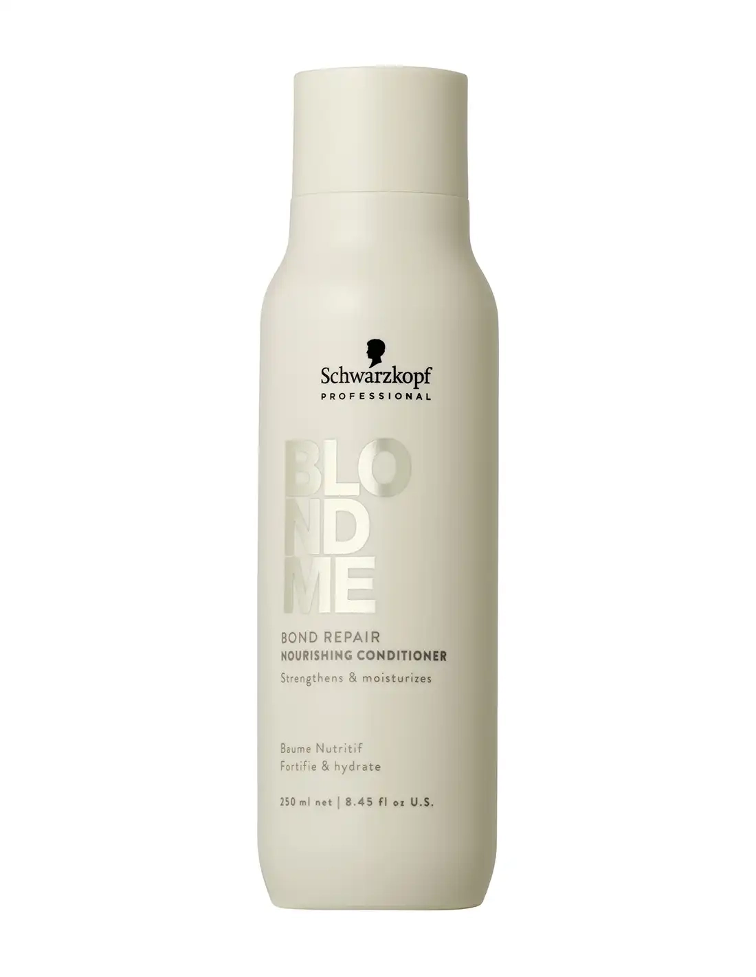 El Acondicionador Nutritivo Bond Repair de BLONDME está formulado con la avanzada Tecnología Bond Repair para nutrir, hidratar y fortalecer el cabello rubio sin apelmazarlo. Repara los daños equivalentes a dos servicios de aclaración tras un solo uso, dejando el cabello suave, flexible y con un brillo saludable. Su fórmula enriquecida con aceite de almendras y extracto de té blanco proporciona una hidratación profunda y facilita el desenredado inmediato.
