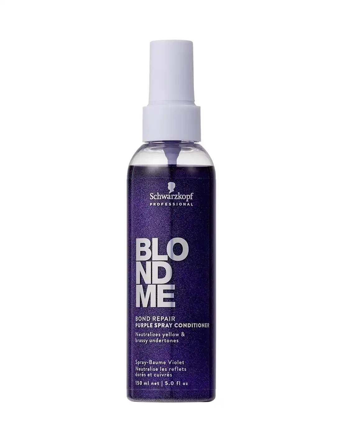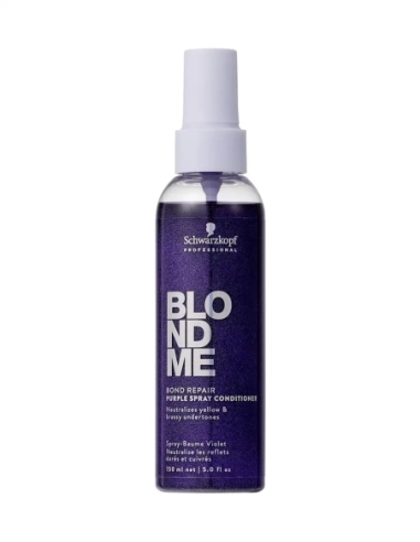 El Spray Acondicionador Morado Bond Repair de BLONDME es un tratamiento sin aclarado diseñado para neutralizar los tonos amarillos no deseados y mantener un rubio frío y luminoso. Enriquecido con aceite de almendras dulces y extracto de aciano, desenreda al instante, mejora la peinabilidad y aporta un brillo plateado natural. Gracias a su Tecnología Bond Repair, fortalece la estructura interna del cabello y repara los daños equivalentes a dos servicios de aclaración tras un solo uso.