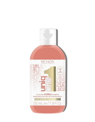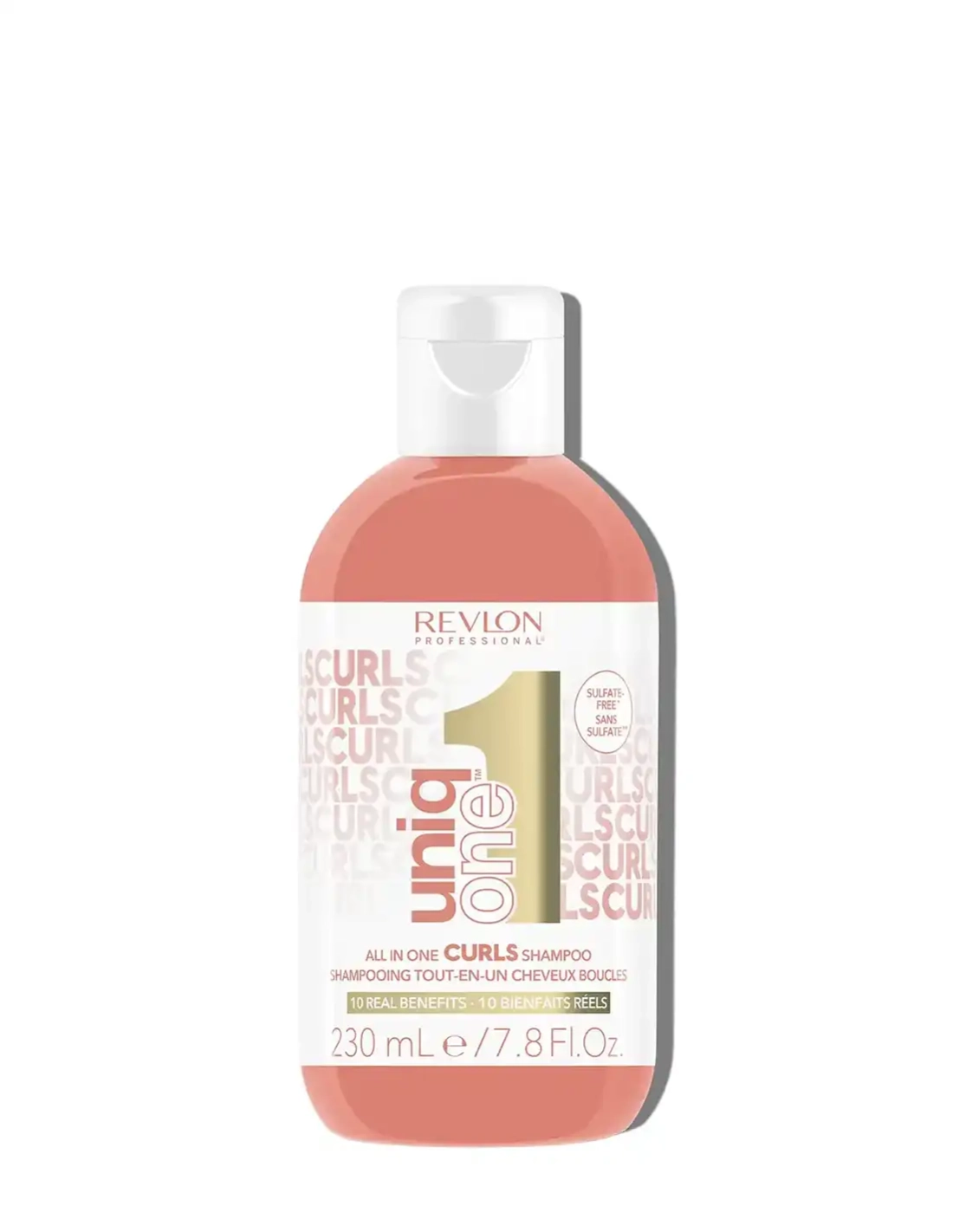 UniqOne™ Sulfate-Free Curls Shampoo es un champú todo en uno sin sulfatos diseñado especialmente para realzar y cuidar los rizos. Su fórmula vegana limpia suavemente el cabello sin eliminar los aceites naturales, controlando el encrespamiento, protegiendo el color y manteniendo la hidratación. Es el paso previo ideal antes de aplicar el tratamiento UniqOne™ Leave-in Curls Treatment.
