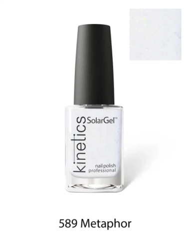 El esmalte de uñas Kinetics Solar Gel es un esmalte que ofrece un acabado tipo gel y que ofrece una durabilidad de hasta 10 días sin utilizar lámpara UV/LED. Para asegurar la durabilidad del esmalte se recomienda utilizar el top coat Solar Gel de Kinetics.