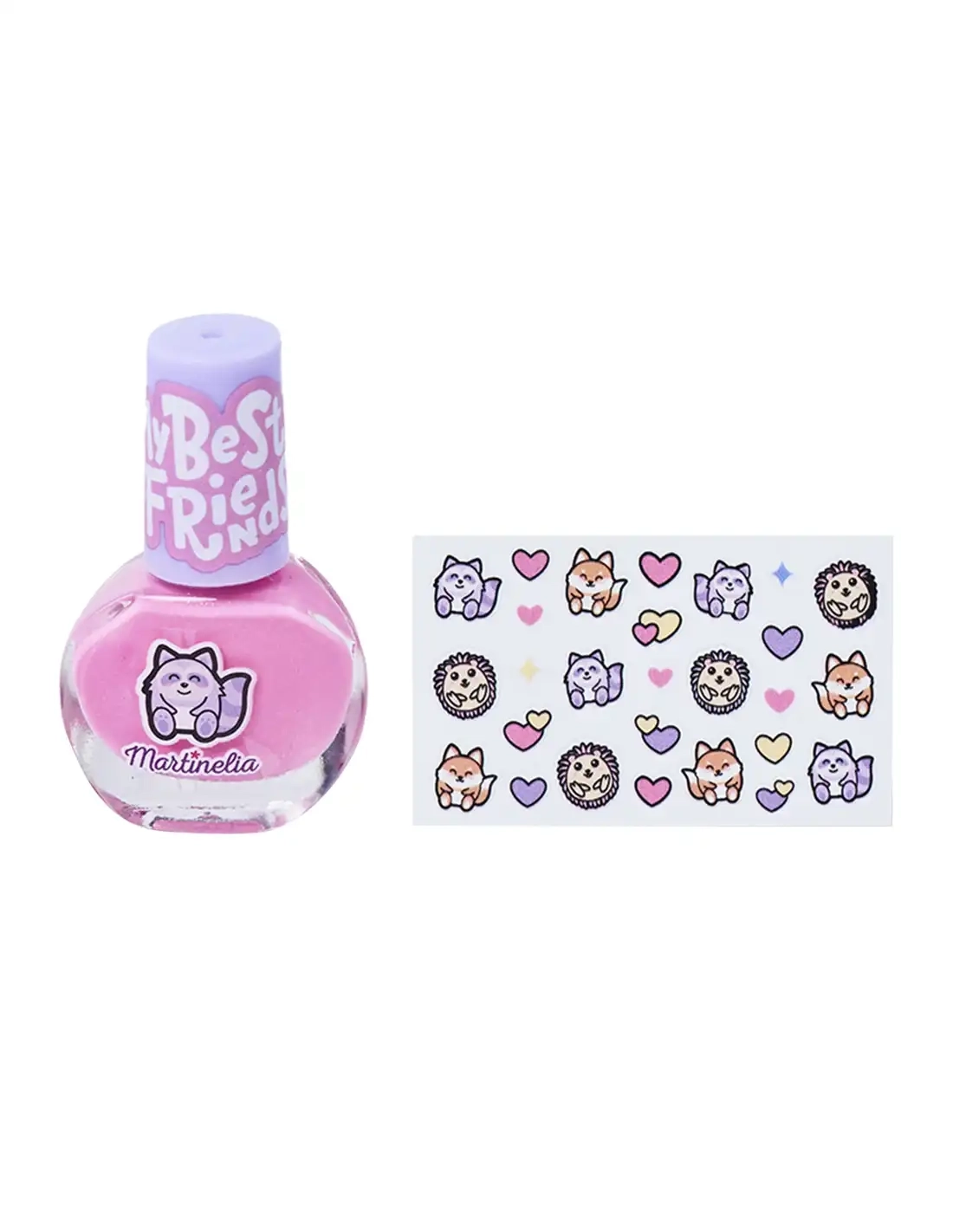 El set Martinelia My Best Friends Nail Polish & Stickers combina un esmalte de uñas rosa con adorables pegatinas,ofreciendo una forma segura y entretenida para que los niños expresen su creatividad, fortalezcan amistades y disfruten decorando sus uñas o cualquier otro objeto.