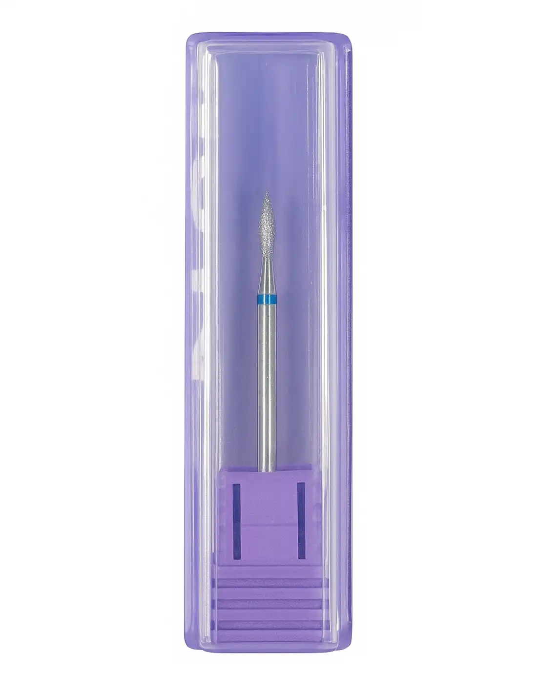 La fresa punta llama de diamante de 2.1 mm con grano medio es ideal para la preparación de cutículas y trabajos de manicura en seco. Su forma alargada permite limpiar con precisión la zona periungueal y los pliegues laterales sin dañar la uña natural.
