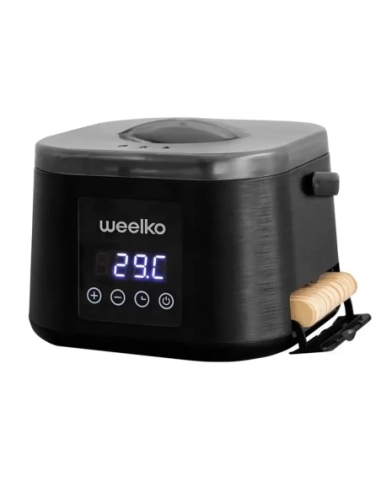 Calentador de cera con pantalla digital de diseño moderno y compacto. Incluye una olla de aluminio extraíble con capacidad de 500 ml y una pantalla digital con botones táctiles para ajustar la temperatura con precisión. Ideal para uso profesional o doméstico en tratamientos de depilación.