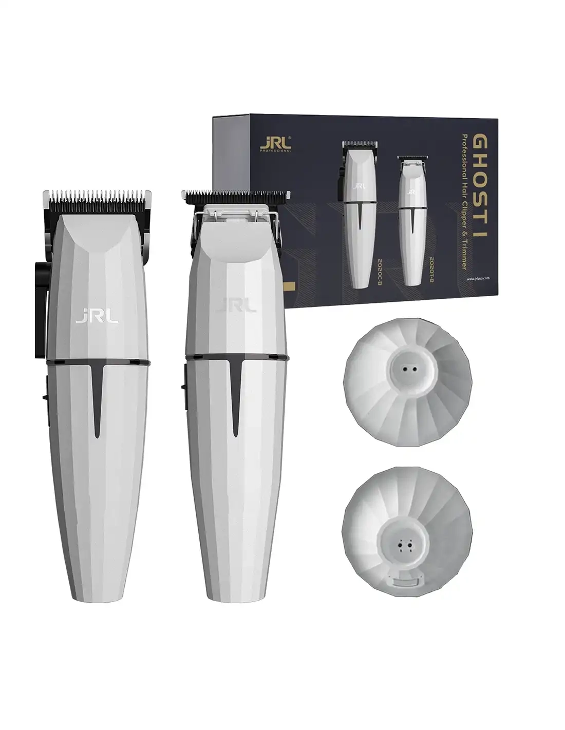 El JRL Ghost Kit 1 es un set profesional que incluye dos de las máquinas más avanzadas de la marca: la Onyx FF 2020C-B, ideal para cortes suaves y uniformes, y la Onyx FF 2020T-B, perfecta para perfilar, delinear y afeitar en seco con precisión quirúrgica. Ambas funcionan de forma inalámbrica, ofreciendo libertad de movimiento, potencia constante y resultados impecables.