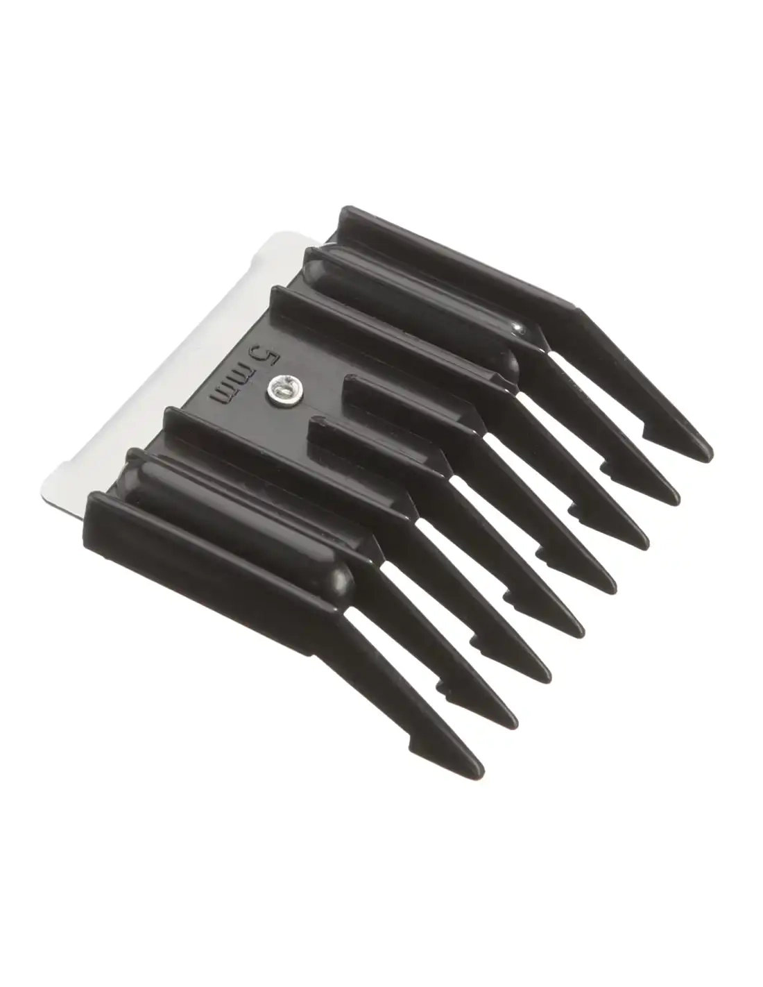 Peine guía metálico de 5 mm compatible con máquinas de corte profesionales. Fabricado con base metálica y púas de plástico resistente, garantiza un deslizamiento suave y un corte uniforme. Perfecto para trabajos de precisión y para mantener siempre la misma longitud en el cabello.