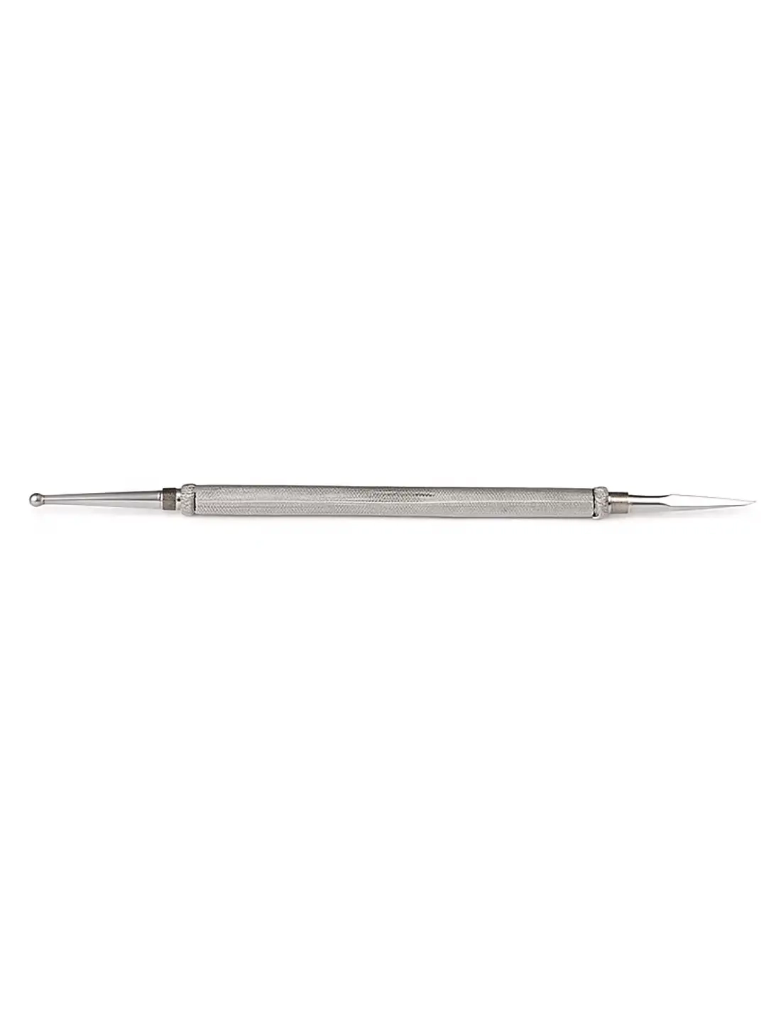 El saca comedones de doble rosca y lanceta es una herramienta profesional de acero inoxidable diseñada para la extracción precisa e higiénica de puntos negros y espinillas. Su estructura doble ofrece una lanceta fina en un extremo para abrir el poro y una rosca en el otro para extraer suavemente las impurezas sin dañar la piel.