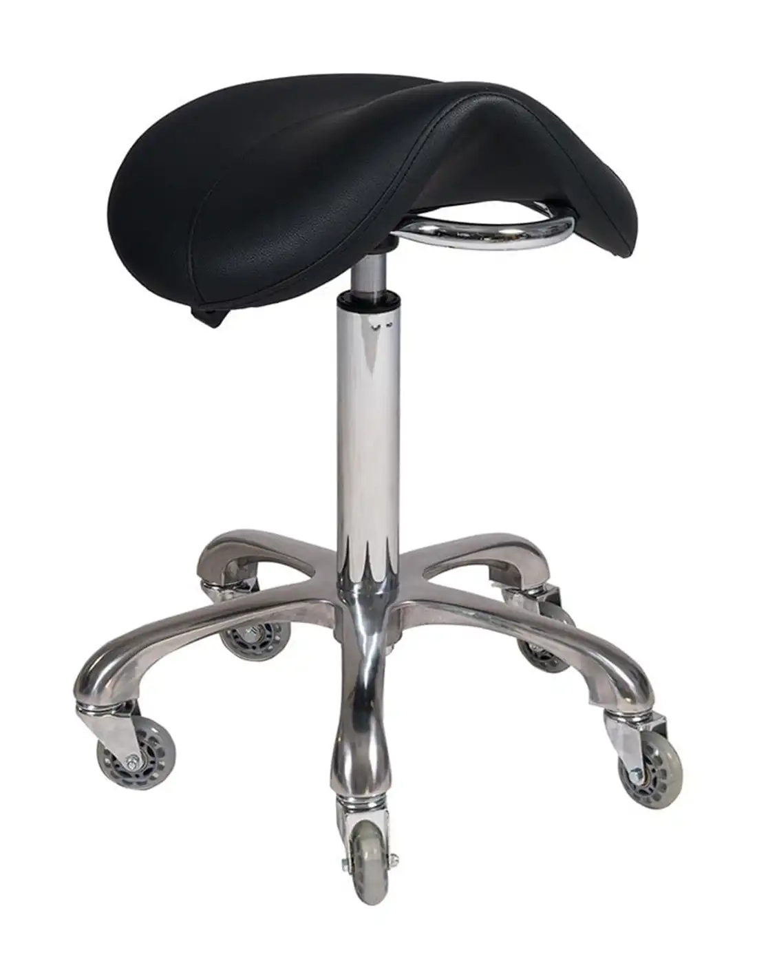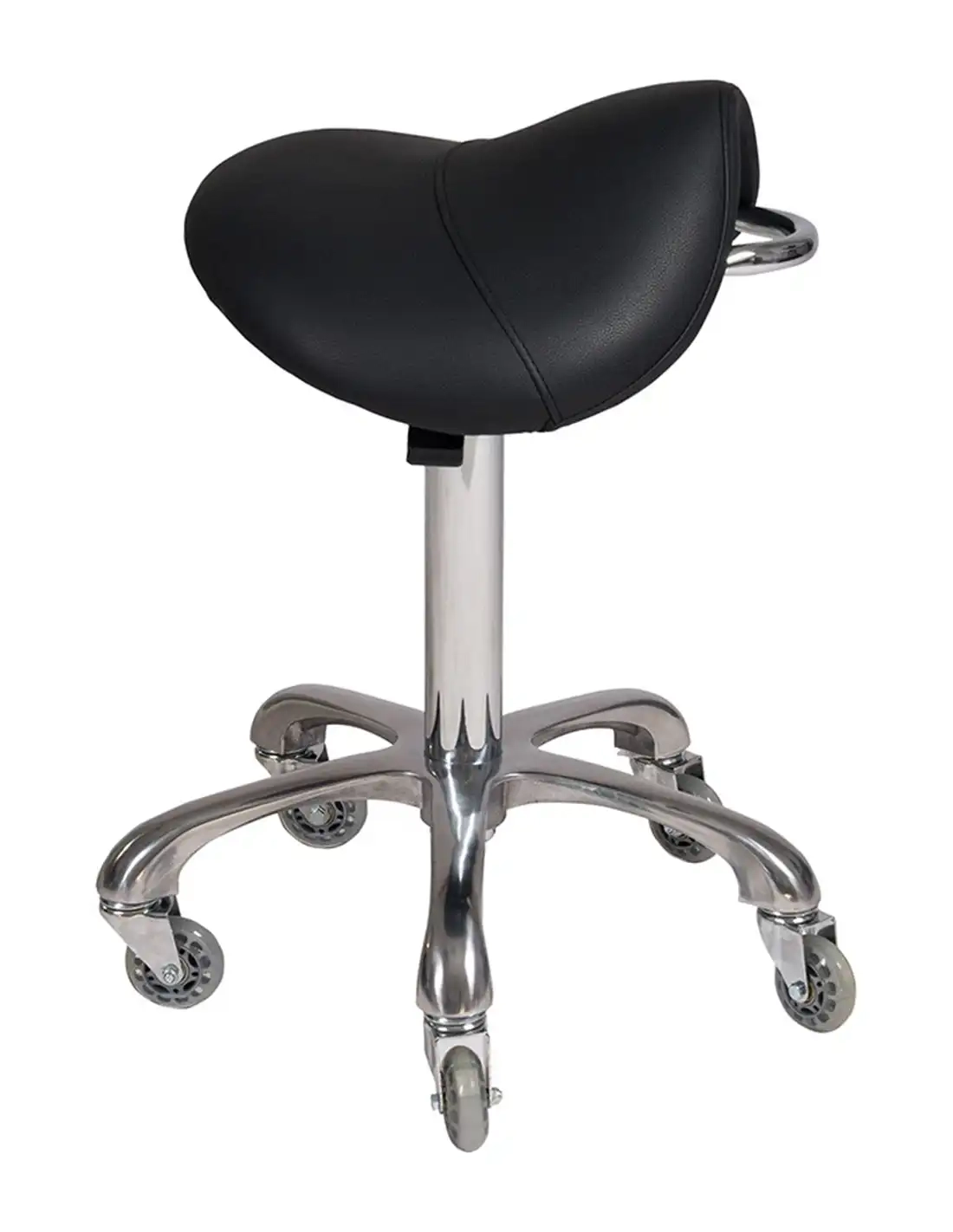 El taburete de estética ACTION de Weelko combina ergonomía y diseño elegante. Su asiento en forma de silla de montar ofrece máxima comodidad durante largas jornadas de trabajo. Incluye un asa de acero inoxidable para facilitar su transporte y una base estable con ruedas de silicona de doble cojinete.